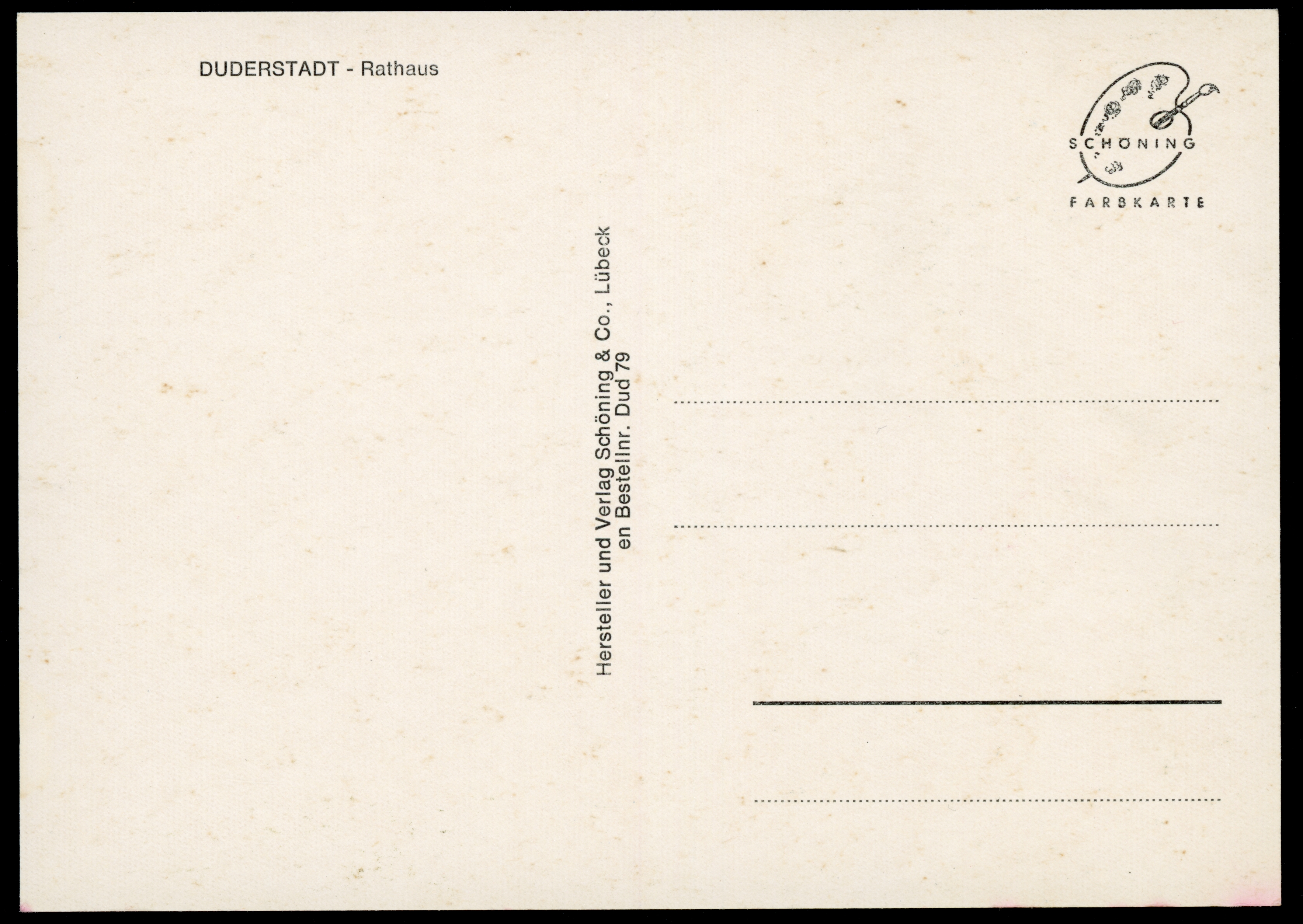 Ort Duderstadt Motive Rathaus Format groß Verlag Chr. Schöning & Co., Lübeck (+ Gebrüder Schmidt) Bestell- oder Individualnummer en Bestellnr. Dud 79