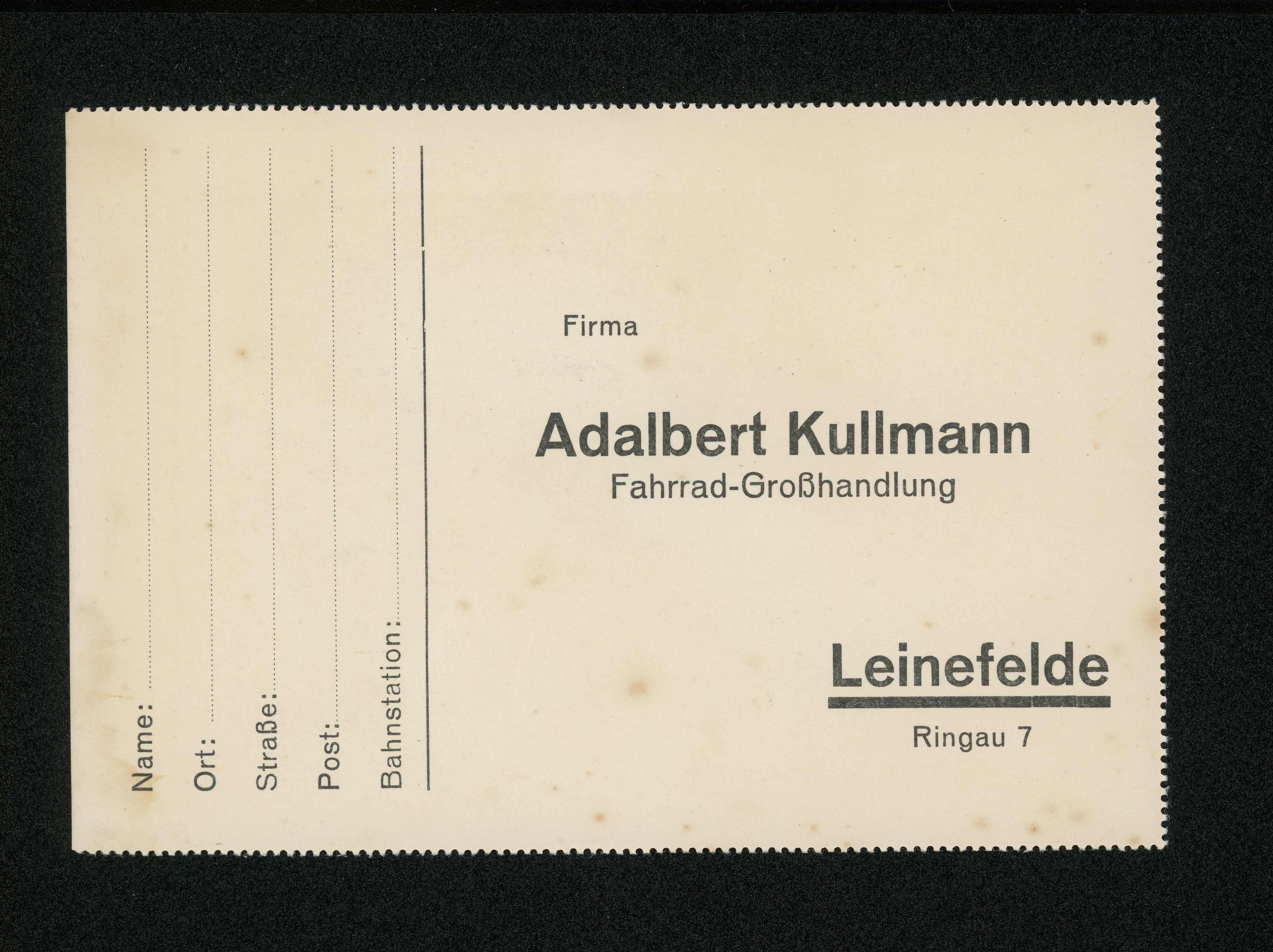 Ort Leinefelde Motive Firma Adalbert Kullmann, Fahrrad-Großhandlung Format groß Verlag - Bestell- oder Individualnummer -