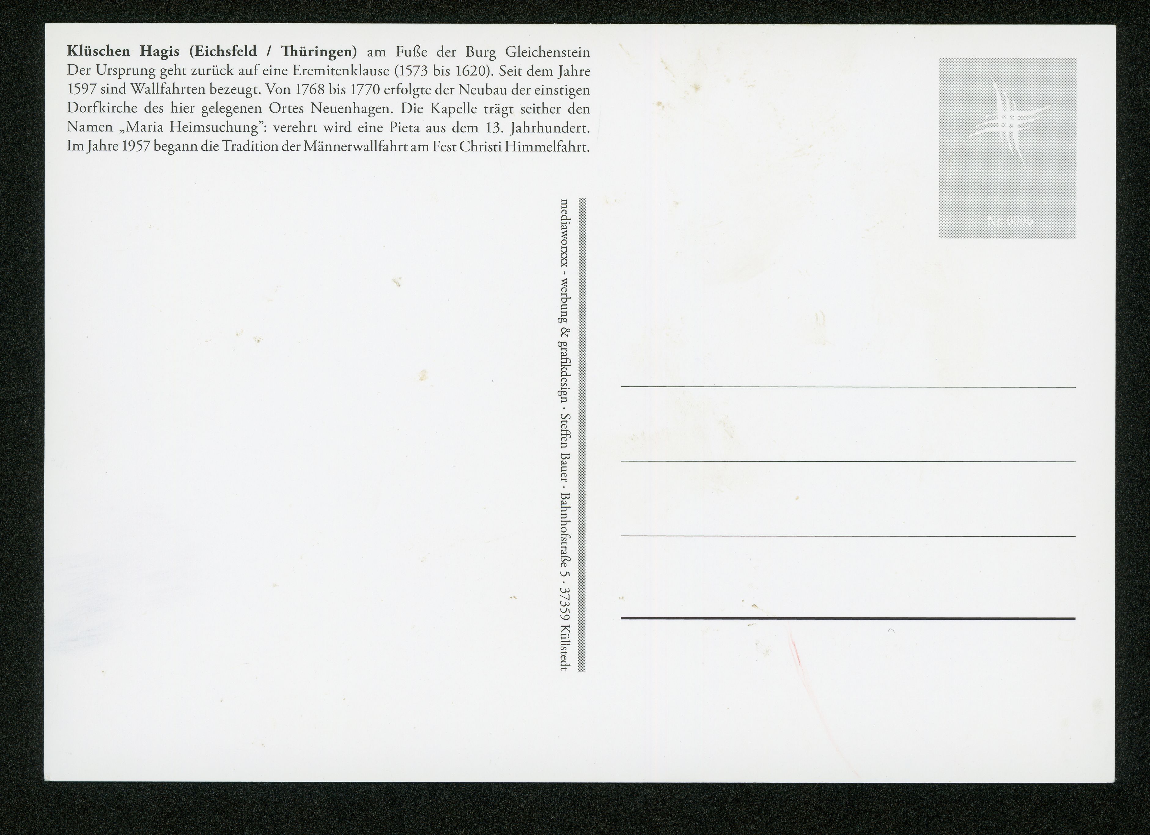Ort Wachstedt Motive Wallfahrtskapelle Klüschen Hagis Format groß Verlag Steffen Bauer, Küllstedt Bestell- oder Individualnummer Nr. 0006 Tags Altar Kirche