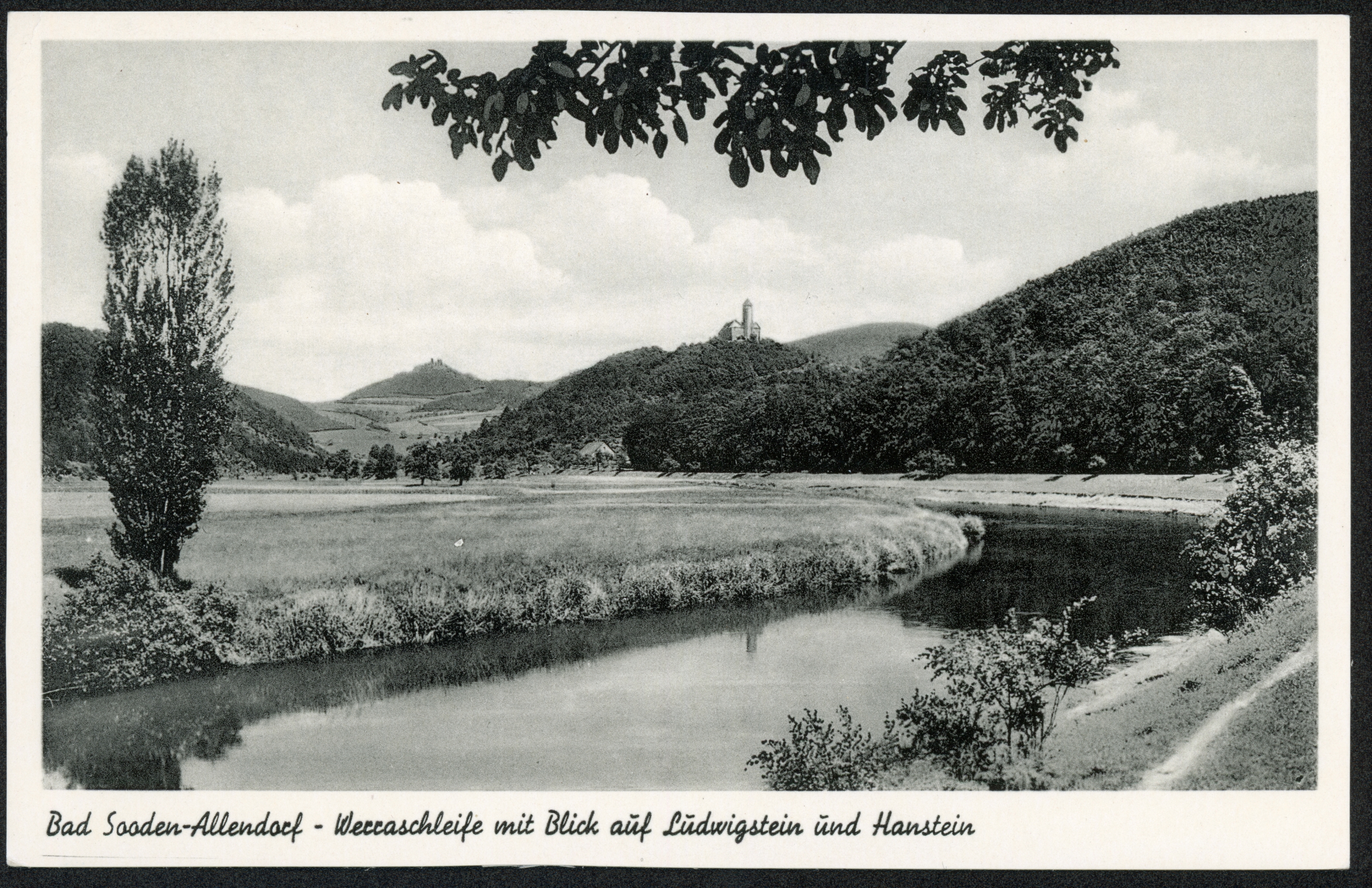 Ort Werleshausen Motive Werraschleife mit Zweiburgenblick auf Ludwigstein und Hanstein Format klein Jahr 1954 Verlag Chr. Schöning & Co., Lübeck (+ Gebrüder Schmidt) Bestell- oder Individualnummer Soo 93-v Tags Bornhagen Burg Ludwigstein Burg Hanstein Jugendburg Ludwigstein